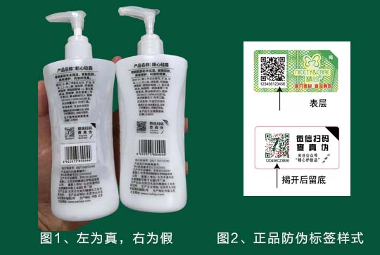 在一物一码防伪(可关注公众号)基础上,通过独家研发的特殊外观防伪二维码,识别极容易,仿冒难度极大