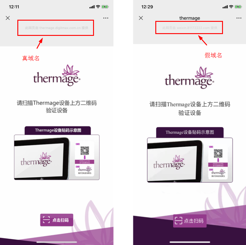 第一代的二维码防伪只是简单地把防伪码和网址整合到二维码中,消费者扫码即可获知真伪查询结果。这种方式看似便捷,却有着极大的漏洞。数码防伪多年来最大的问题就是,容易被造假者仿冒查询平台。传统的电话、网站查询真伪,造假者伪造一个查询电话或者网站,就可以蒙混过关,因为消费者记不住真实的电话号码或网址。二维码防伪则放大了这个问题,消费者扫码打开网页,连网址都看不到(很多人不知道可以通过下拉查看网址),这让造假者更容易仿冒,做个一模一样的网页简直不要太简单。